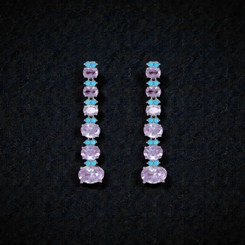 Rineva Amethyst Aqua Silver Linear Drop Earrings