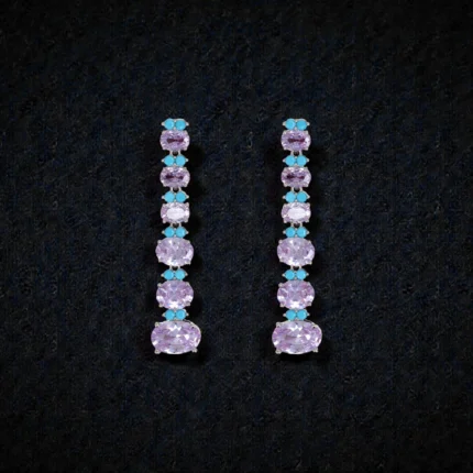 Rineva Amethyst Aqua Silver Linear Drop Earrings