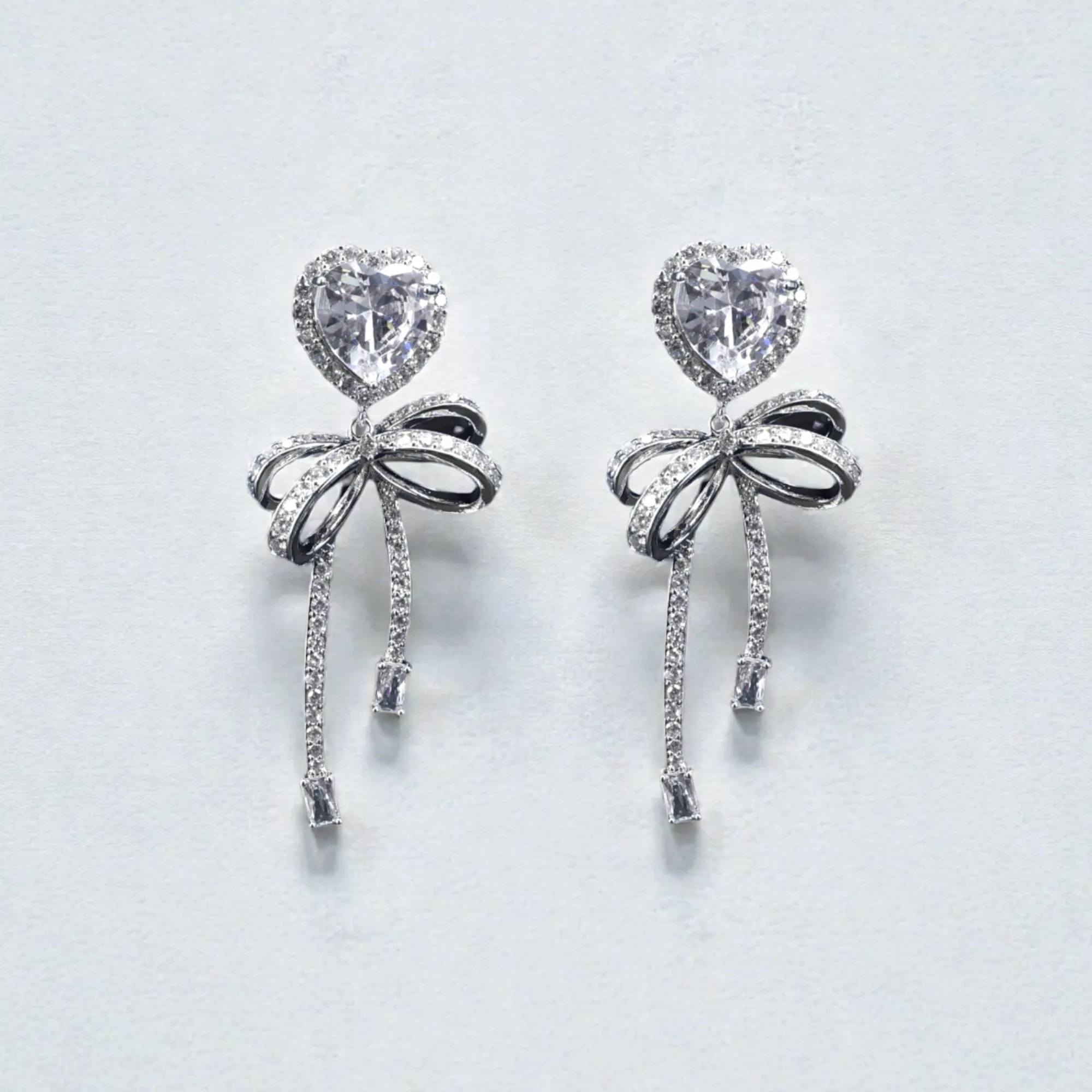 Crafted using premium-quality artificial stones and a polished silver-tone metal base, the Rineva Amour Bow Drop Earrings are designed for both beauty and comfort. The lightweight construction ensures they can be worn for extended hours without discomfort, while secure fittings provide confidence throughout the day or evening.