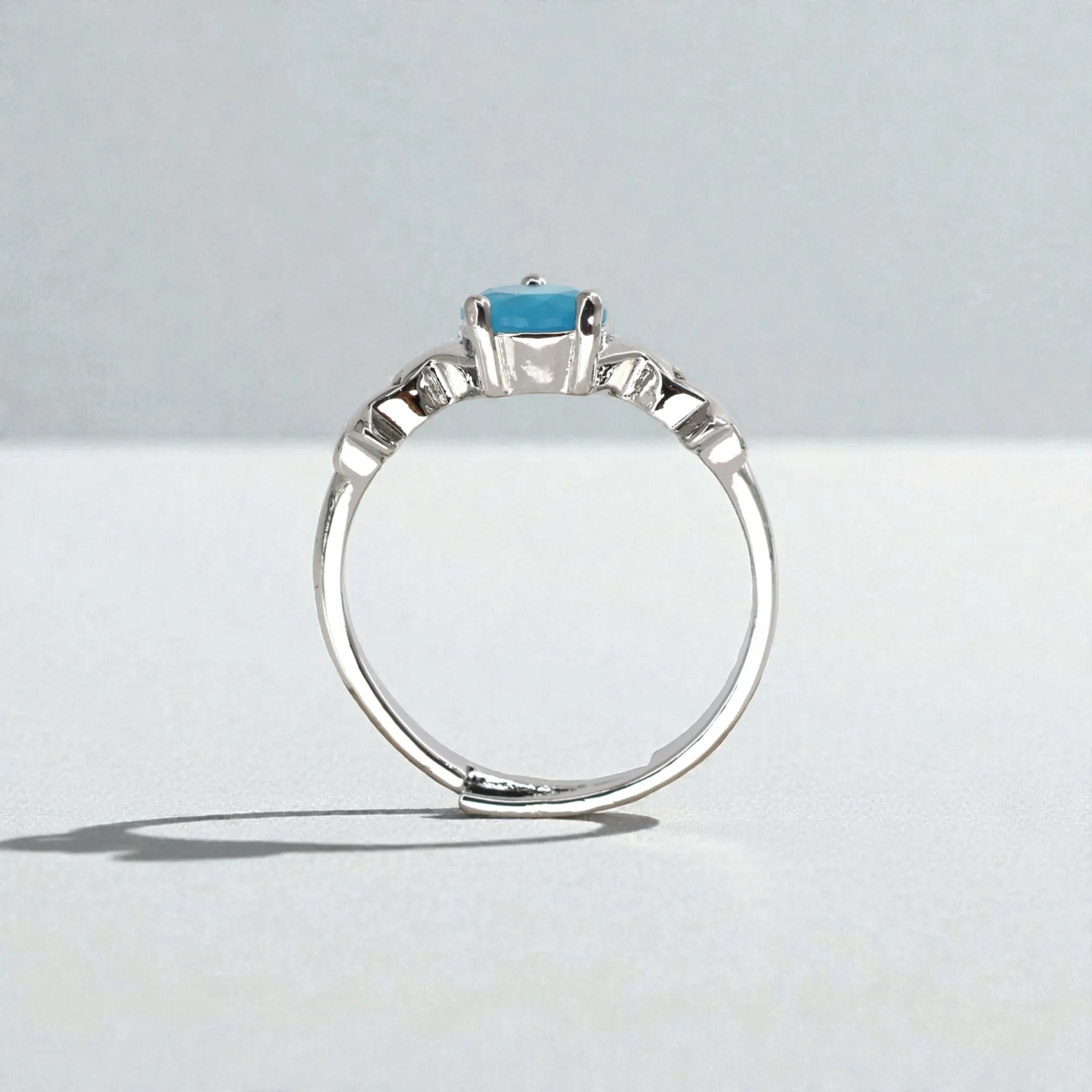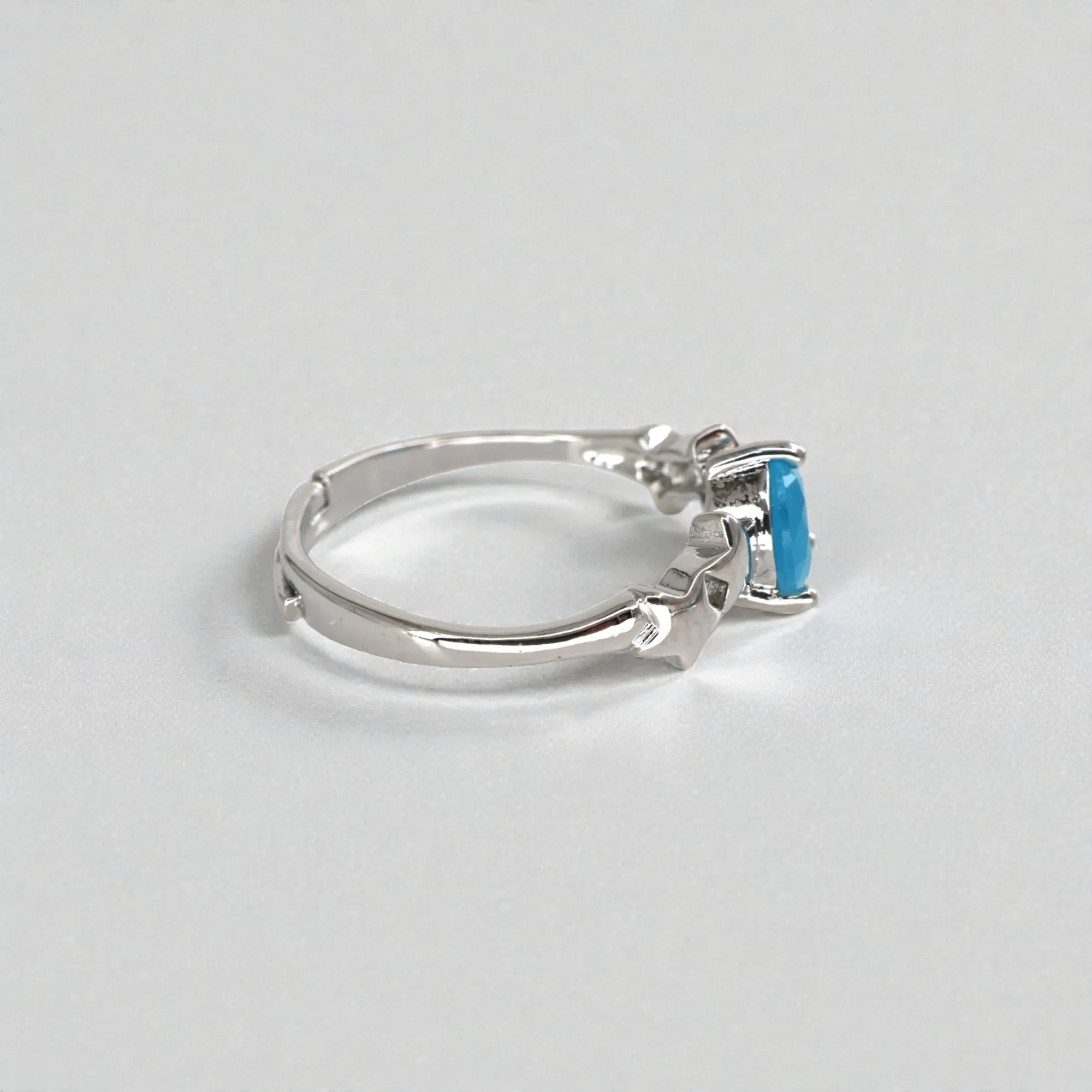 The Rineva Azure Crown Silver Adjustable Ring is designed to bring together elegance, colour, and everyday comfort. At the centre lies a striking round-cut blue stone, securely held in a crown-inspired prong setting that adds a touch of royal charm to a modern silhouette.