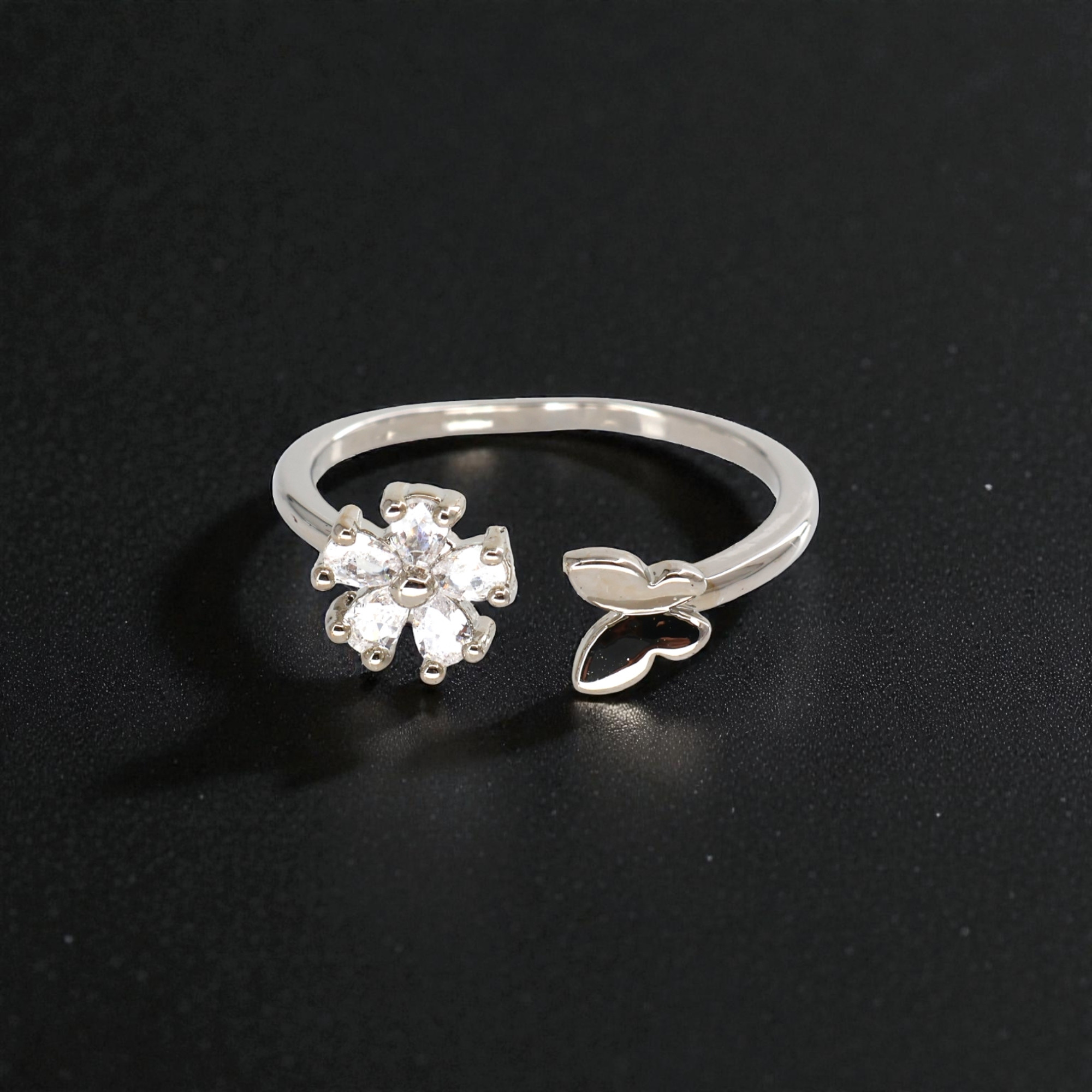 Its open adjustable band ensures a comfortable and secure fit for different finger sizes, making it easy to wear throughout the day. Lightweight and smooth on the skin, this ring is perfect for everyday styling, office wear, casual outings, or intimate celebrations.
