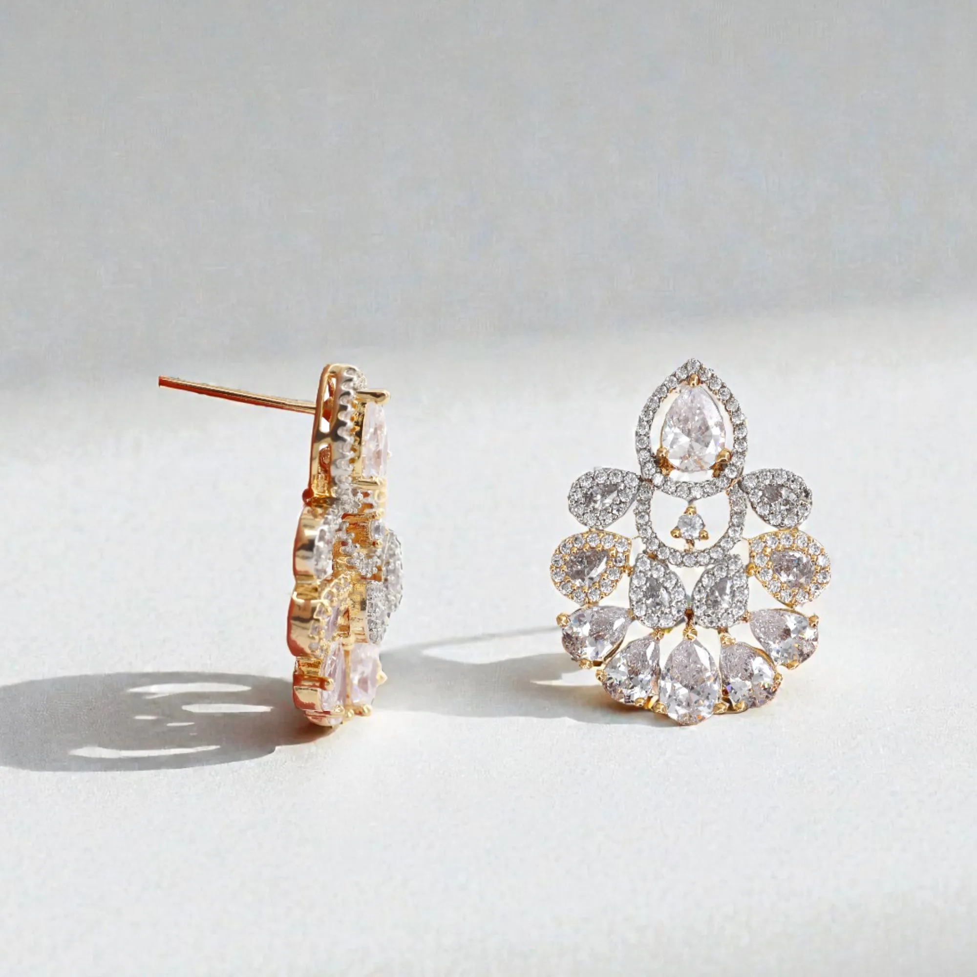 The matching earrings mirror the same detailed craftsmanship, creating perfect harmony when worn together. Despite the detailed stonework, both the necklace and earrings are lightweight and comfortable, making them suitable for long hours of wear during weddings, festive celebrations, receptions, and evening events.