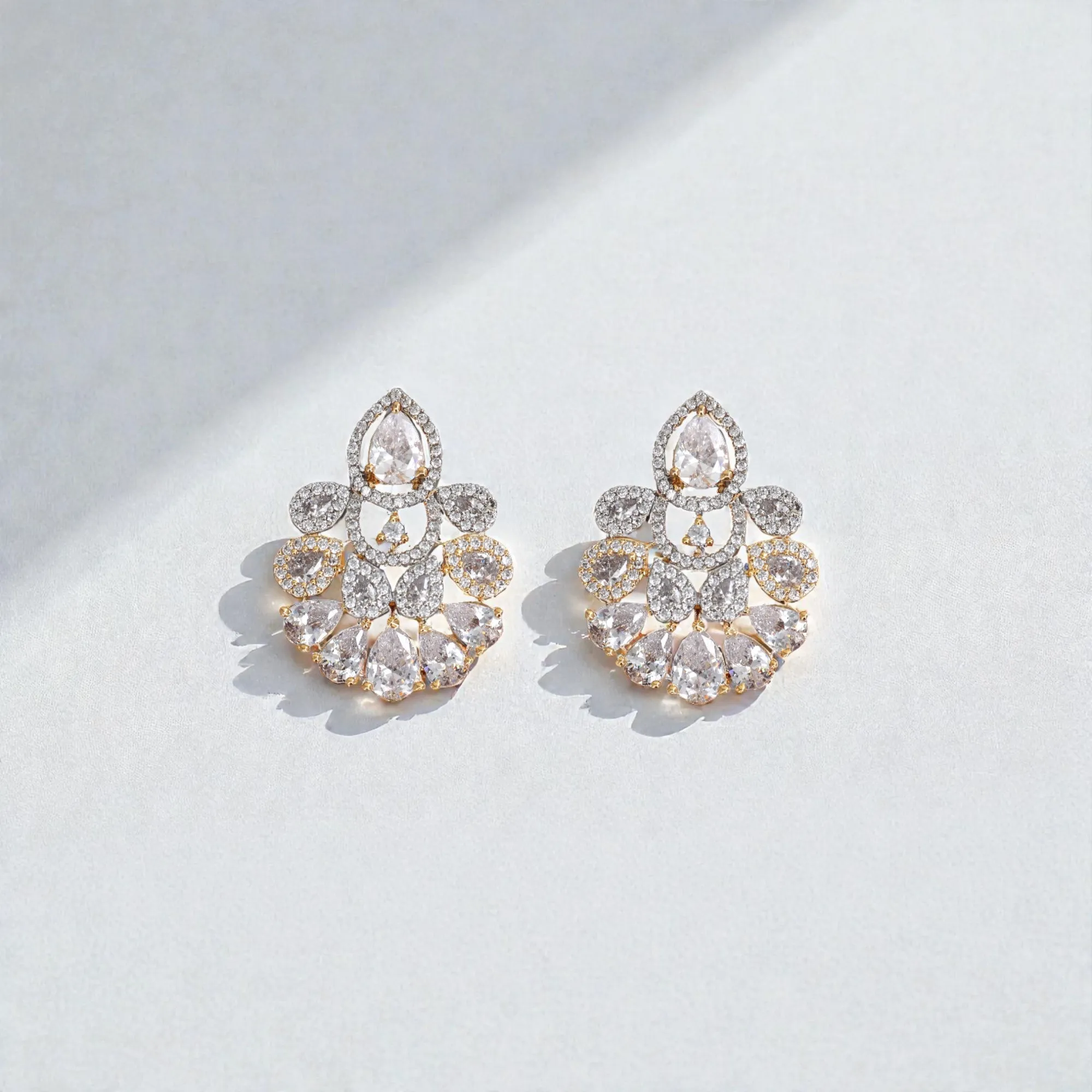 This jewellery set pairs effortlessly with sarees, lehengas, gowns, and contemporary outfits, enhancing both traditional and modern styles. The warm gold finish and sparkling stones make it an excellent choice for bridal looks as well as elegant party wear.