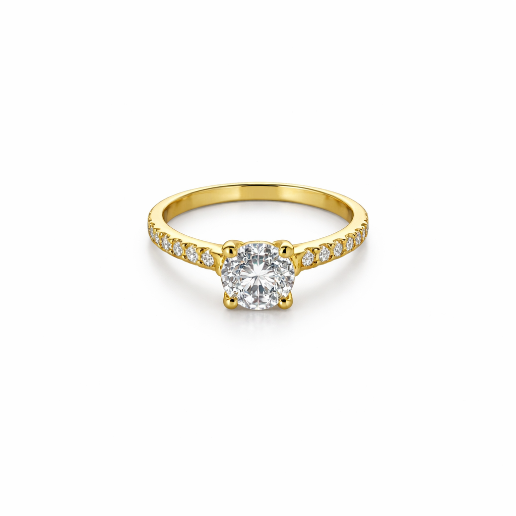 The Rineva Classic Radiance Solitaire Ring embodies timeless elegance through a clean and refined silhouette. Featuring a brilliant round-cut centerpiece secured in a four-prong setting, this design captures light beautifully from every angle.
