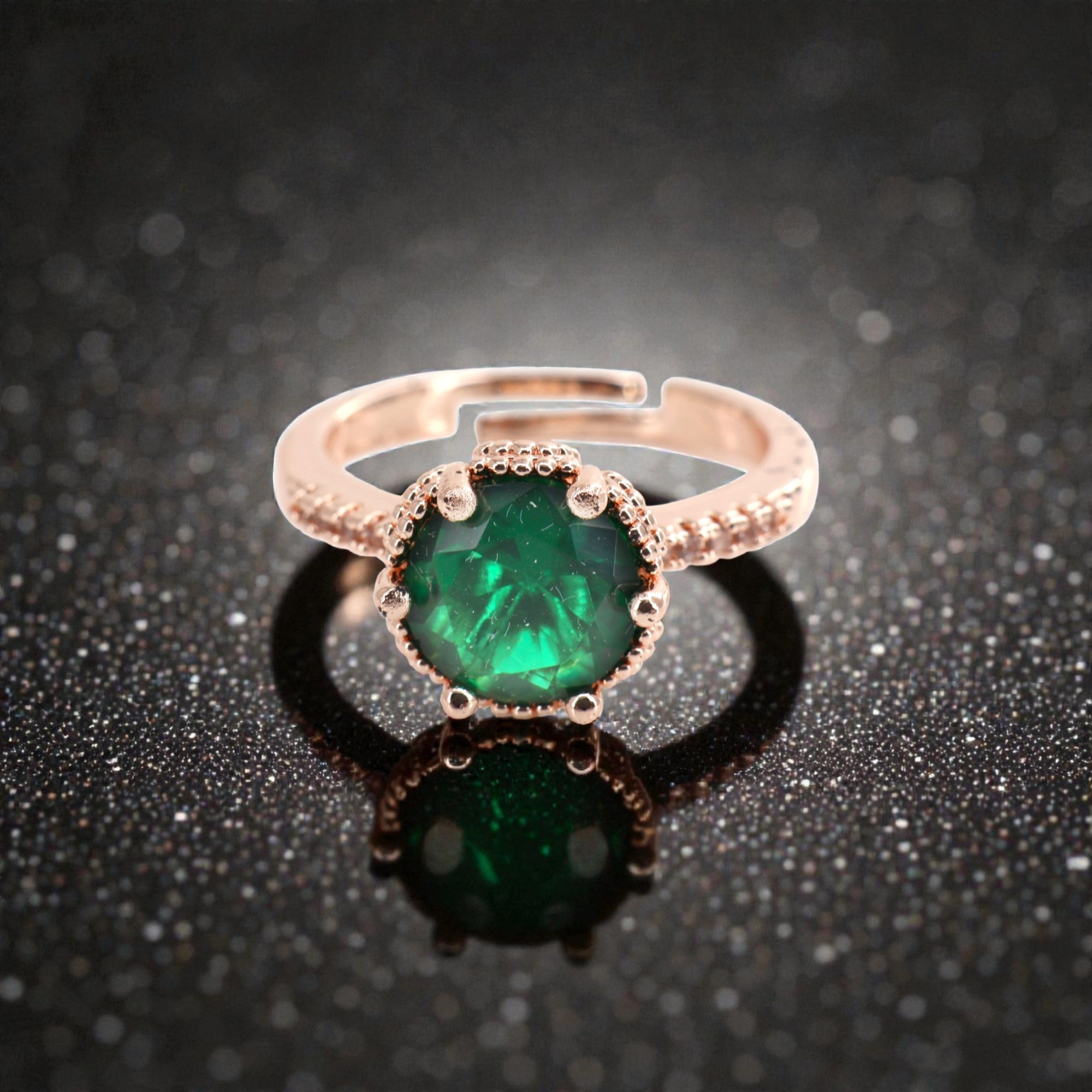 The Rineva Emerald Grace Rose Gold Adjustable Ring is a beautiful expression of elegance, confidence, and timeless charm. Featuring a striking round emerald-green center stone, this ring instantly draws attention with its rich color and luminous brilliance.