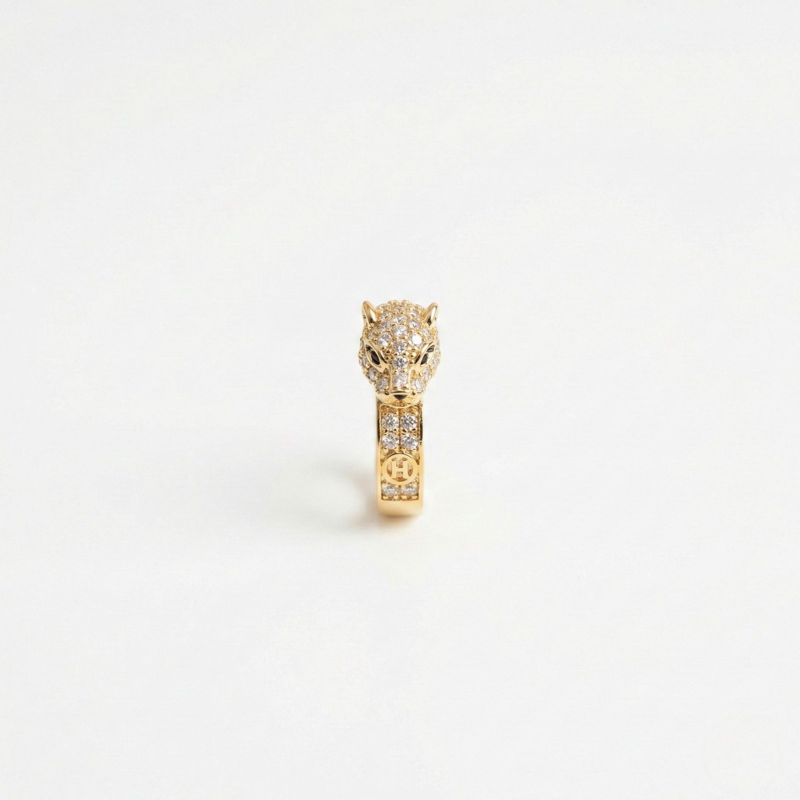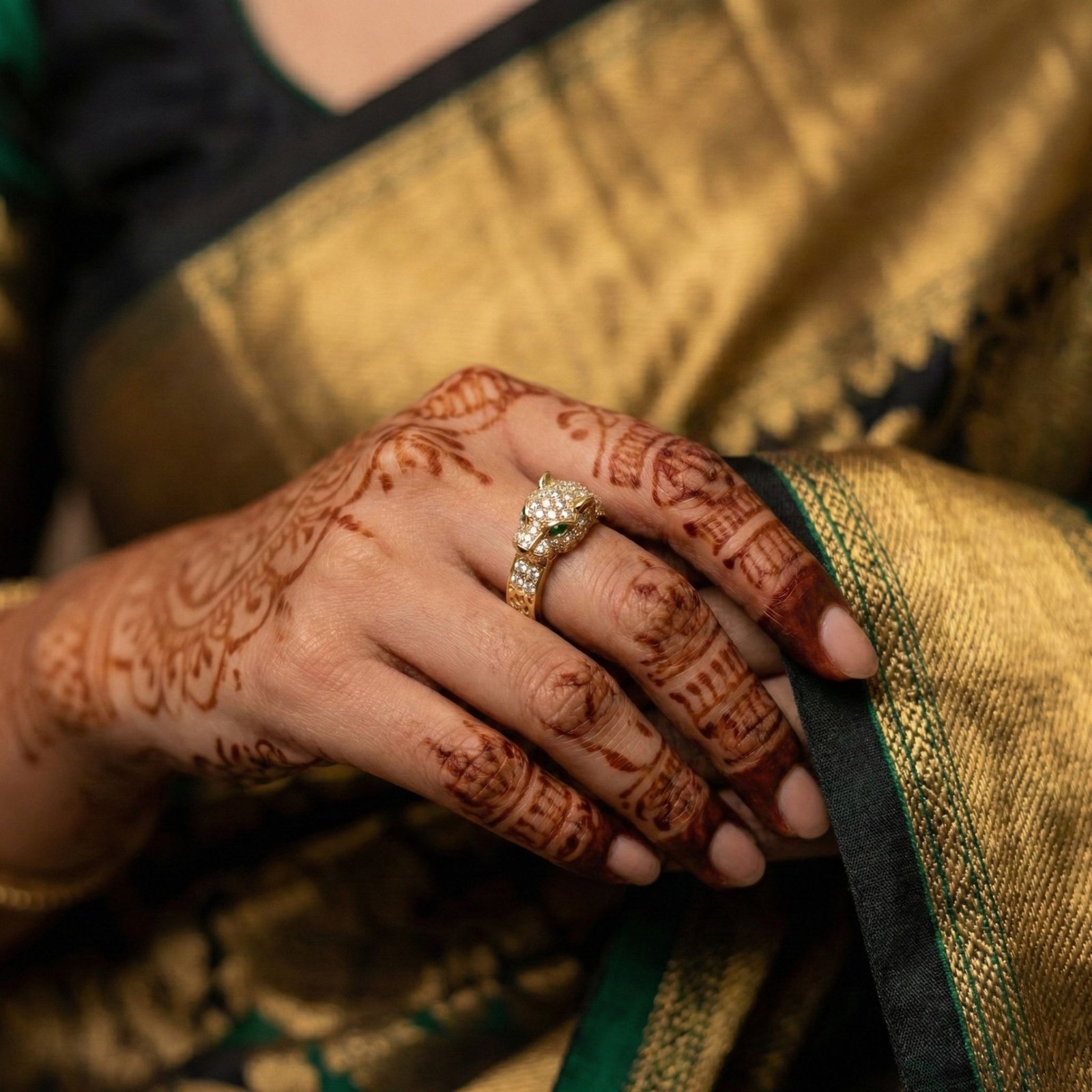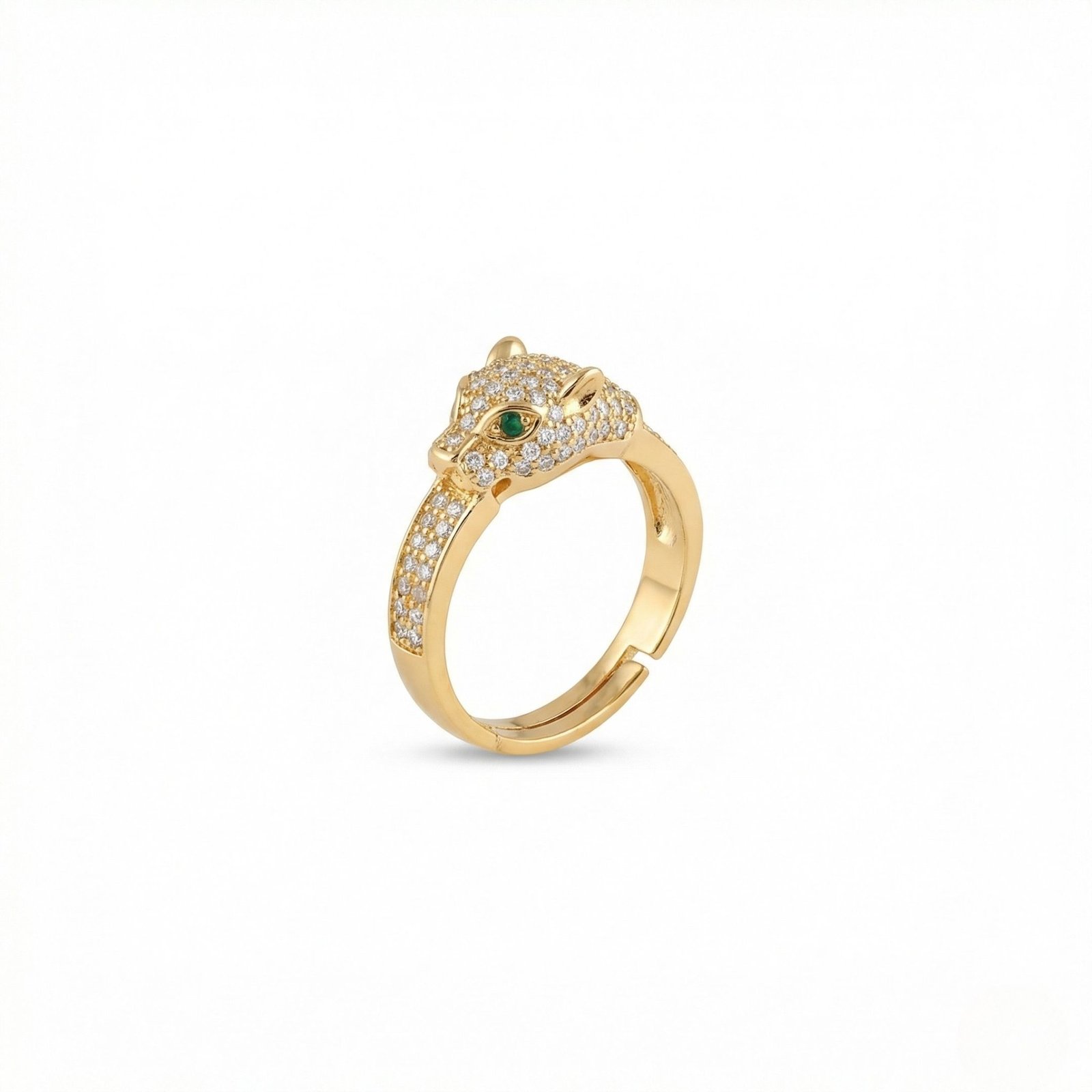 Panther-head statement ring with emerald-tone eye detailing