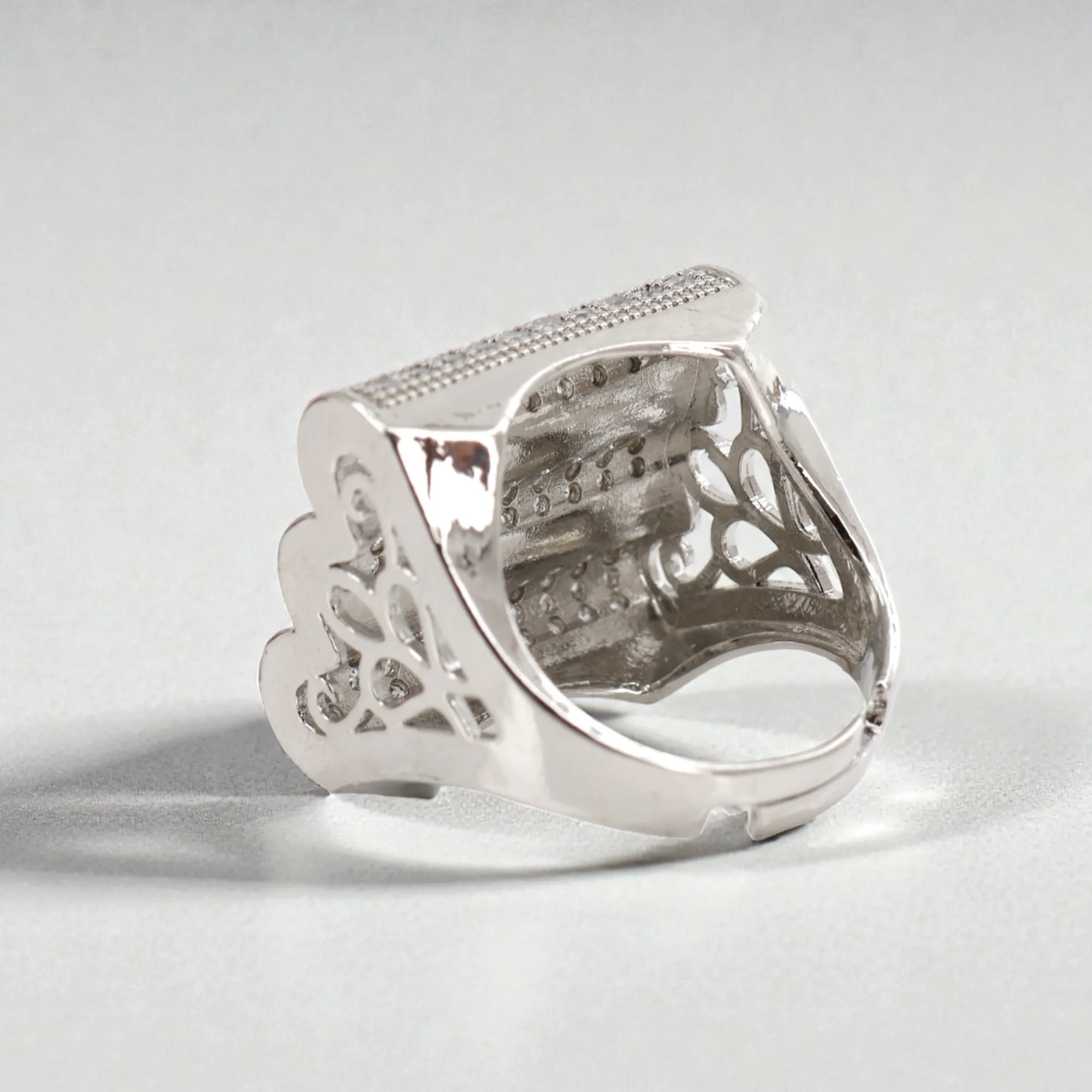 Rineva Regal Sparkle Silver Statement Ring