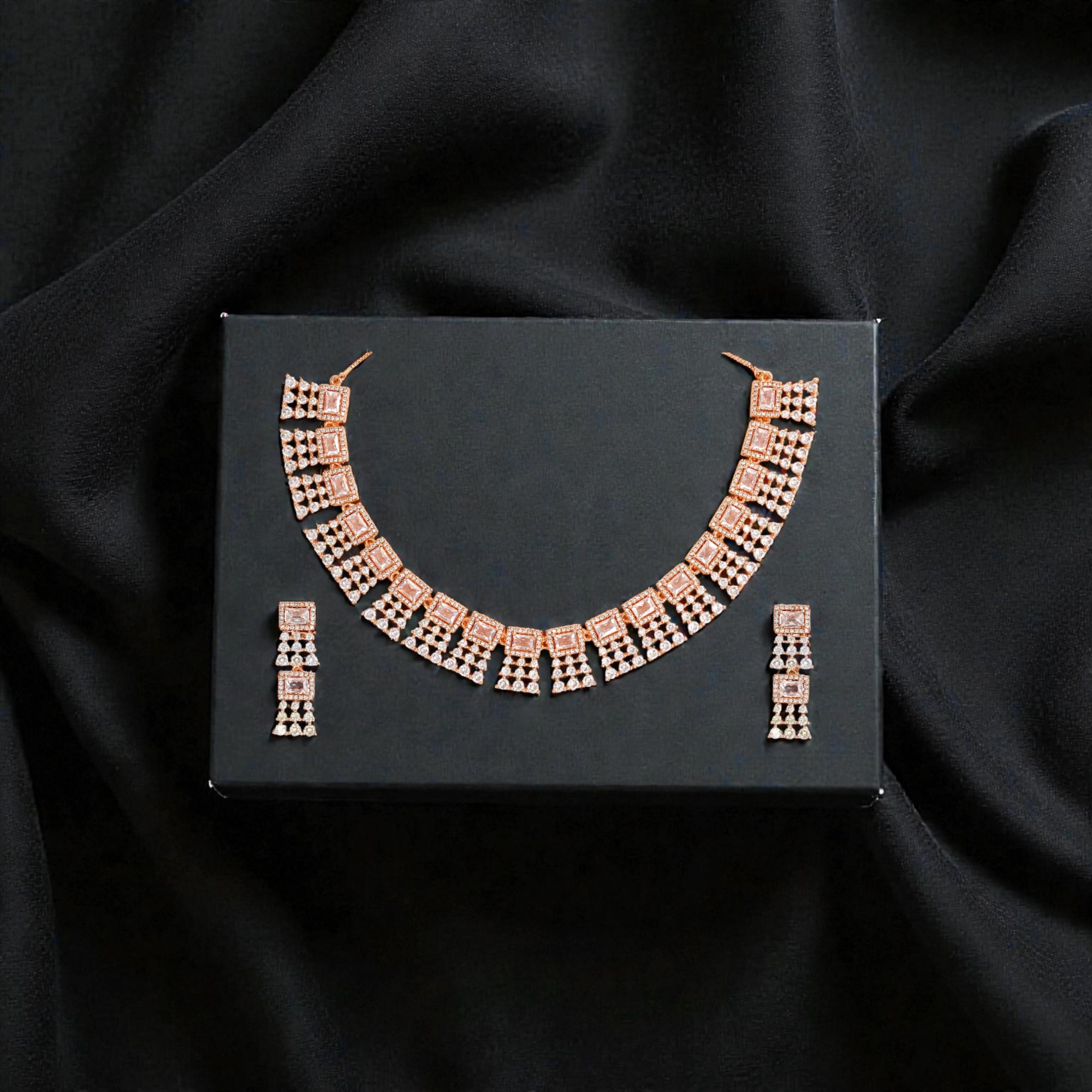 Designed for women who appreciate elegant craftsmanship and timeless style, the Rineva Rosegold Radiant Square Necklace Set also makes a thoughtful gifting choice for weddings, anniversaries, and milestone celebrations.