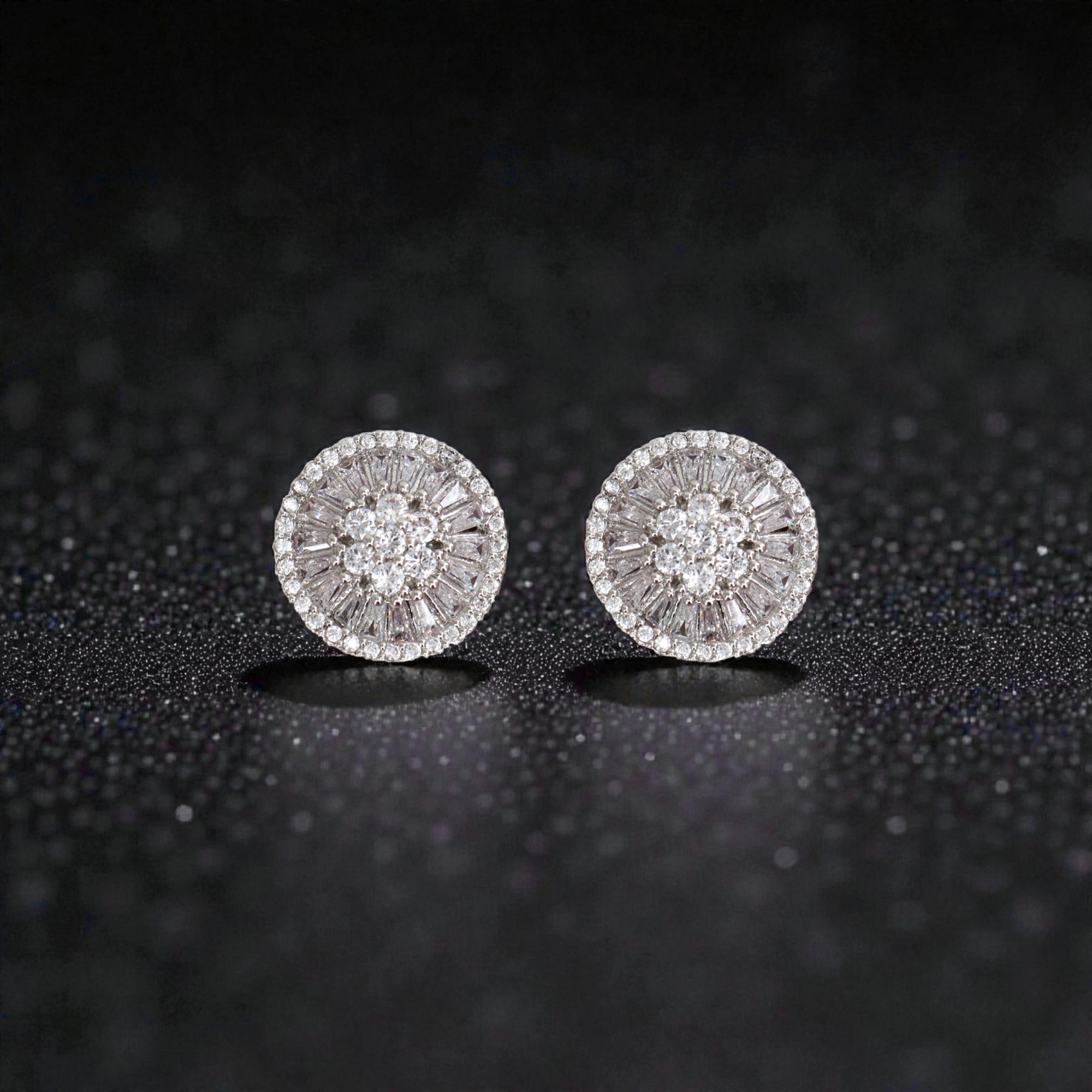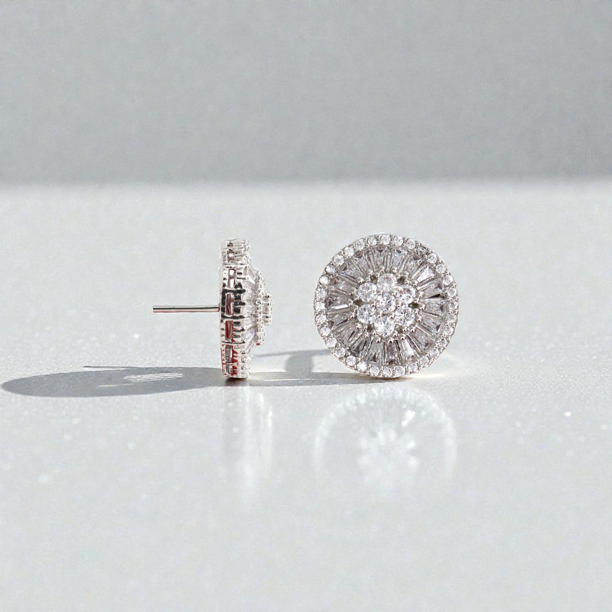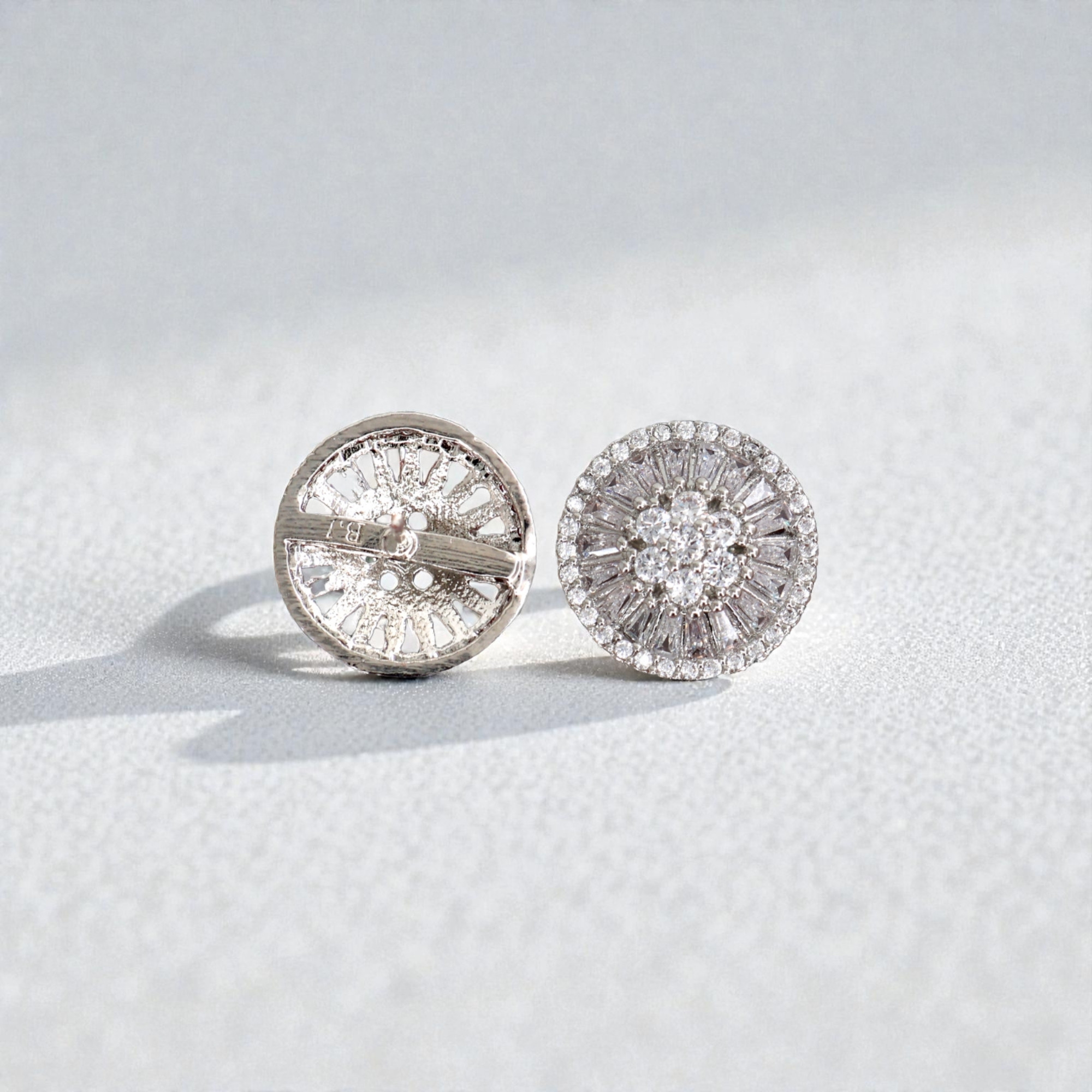 The Rineva Stella Silver Radiant Stud Earrings are designed to bring timeless sparkle with a refined modern touch. Crafted in a polished silver tone, these stud earrings feature a striking circular silhouette that highlights a brilliant cluster of round-cut stones at the center.