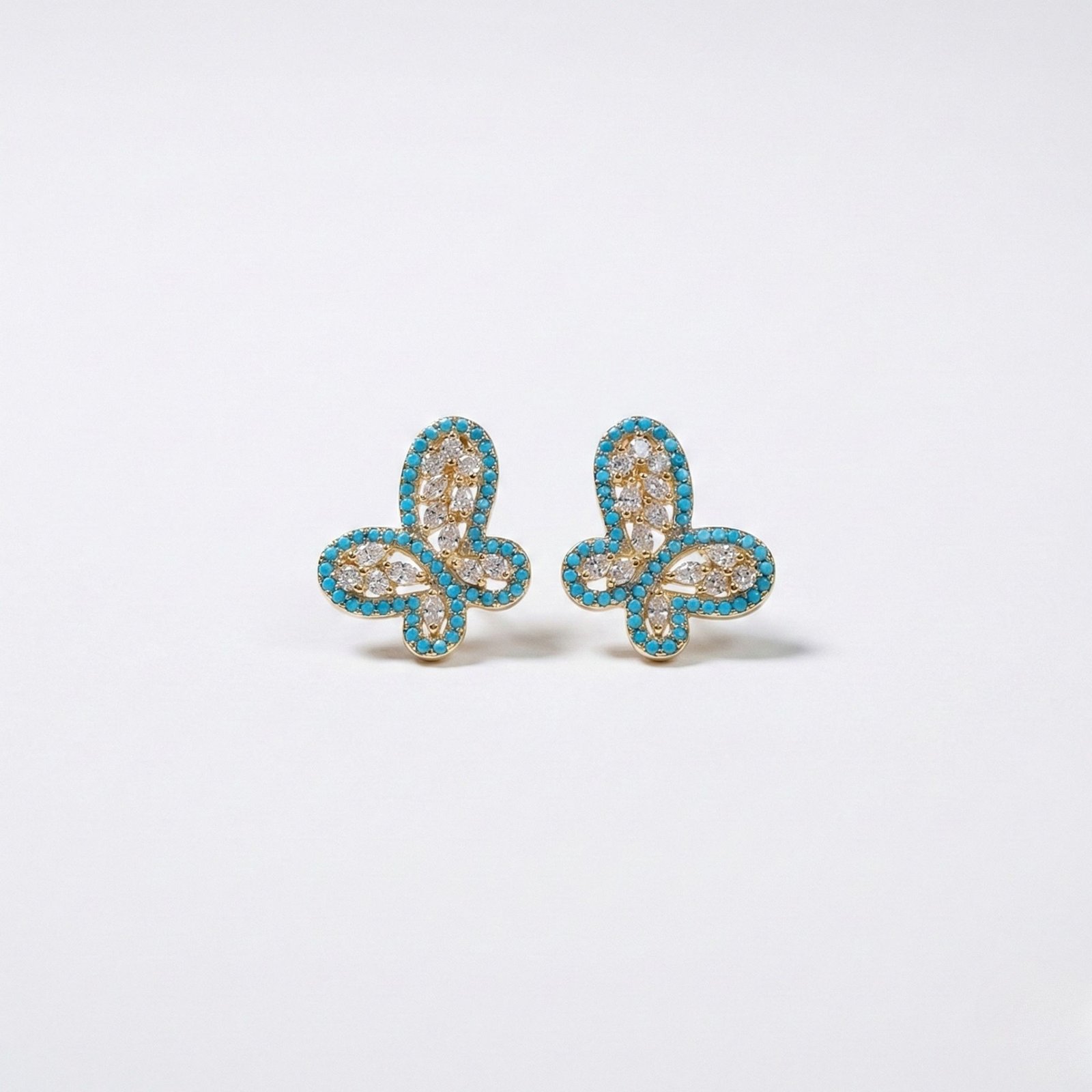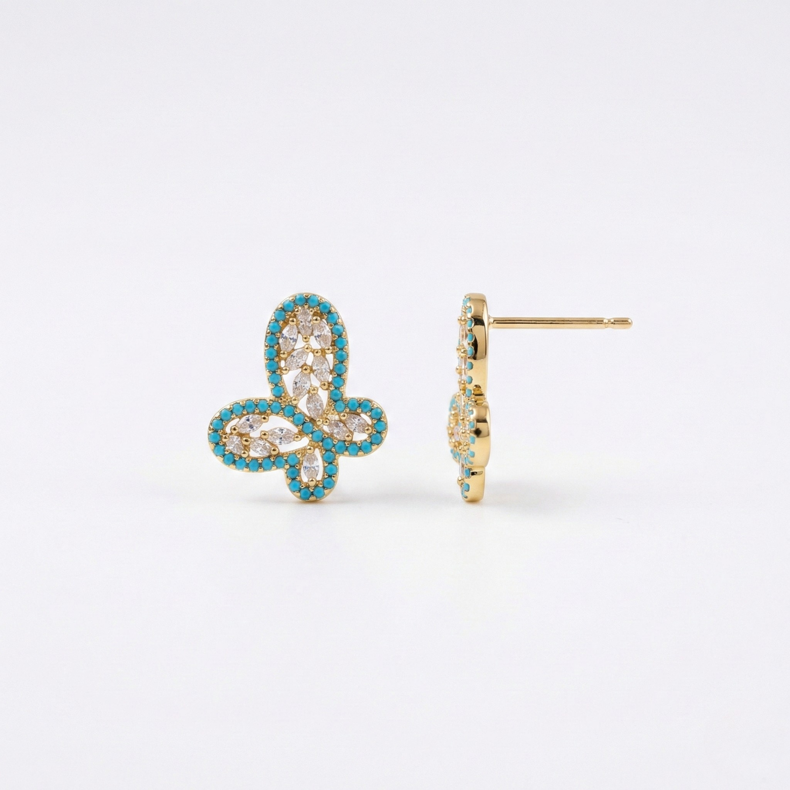 Elegant floral-inspired stud design with turquoise stone border