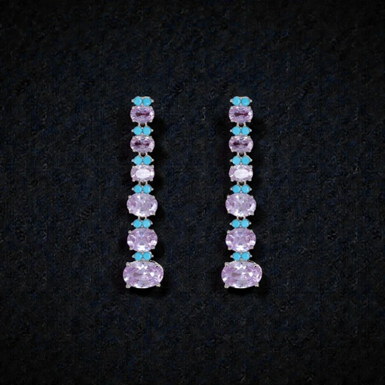Rineva Amethyst Aqua Silver Linear Drop Earrings
